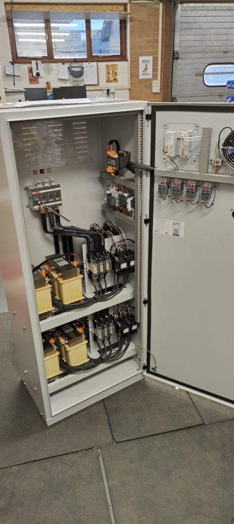 Here we see the unit following its testing carried out in-house by our workshop team. Once all testing is completed and approved the unit is either delivered and installed by one of our electrical engineers at PFC Engineering or when requested as supply only, delivered to site.