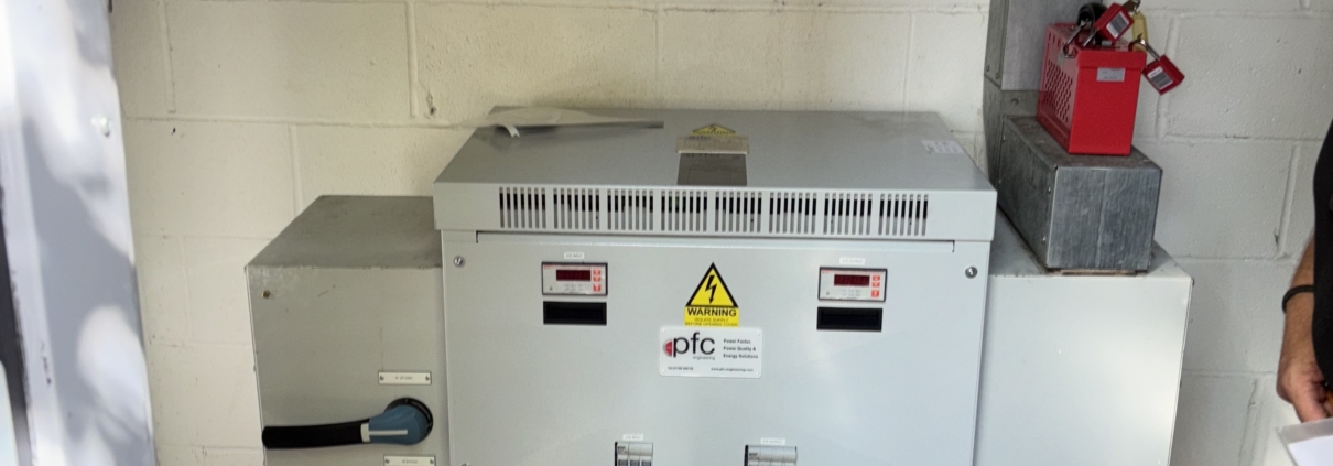 A routine maintenance visit identified multiple issues with the existing voltage optimisation (VO) equipment installed at the fire station. The site operates without a standby generator; however, UPS backup is available for essential services, offering limited resilience in the event of extended supply interruptions. Current supply protection was provided via a load breaker (L/B), although for optimal compliance and reliability this should ideally be upgraded to either a fused switch (F/SW) or an MCCB.