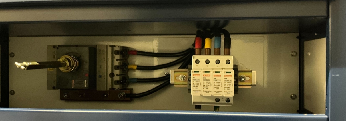 The existing Surge Protection Device was DIN-rail mounted within the mains Low Voltage (LV) panel and supplied via a 100A moulded case circuit breaker (MCCB), allowing for straightforward and safe replacement. A return visit to site was arranged, during which our engineer installed a direct replacement unit. The new SPD was fitted using the existing mounting arrangement and power cabling, minimising disruption and ensuring continuity of protection.