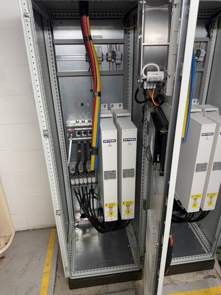 - Given the requirement for detuned reactors, there was insufficient space within the existing LV mains panel, meaning a new freestanding detuned PFC system would be required for future replacement.